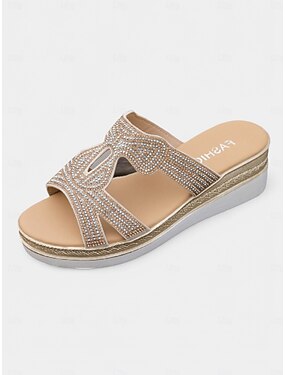 sandales compensées à strass pour femmes – élégantes sandales à plateforme à enfiler pour l'été, la plage et les sorties décontractées