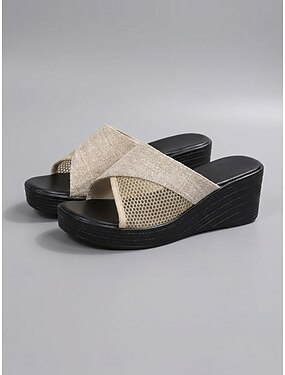 Sandales compensées beiges à brides croisées pour femmes – chaussures d'été à plateforme et bout ouvert, idéales pour le jardin, les activités de plein air, les vacances et le quotidien