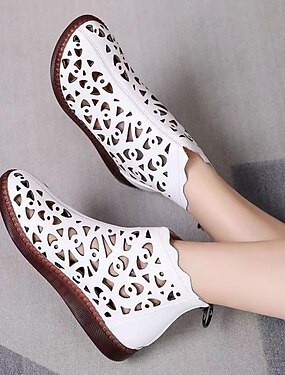 Bottines blanches ajourées pour femmes – bottines élégantes en cuir découpé à semelle souple, chaussures vintage décontractées pour le printemps et l'été