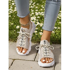 Sandales sportives beiges pour femmes - sandales respirantes à bout ouvert et fermeture à lacets, idéales pour les promenades au parc, les journées à la plage et les aventures en plein air.