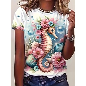 Femmes T-shirt Imprimé Fleuri Graphique Rose Élégant ancien Mode Manche Courte Col rond Hauts Réguliers Quotidien Sortir Week-end Bleu Blanche Vert Claire Bleu Poudré Marron Été