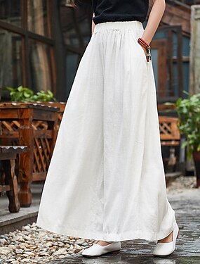 Femmes Pantalon en coton et lin Jambe large Pantalon d'été Pantalons Amples Vacances Uni Longueur complète Taille Moyenne Taille Élastique in in france they say Pontalon wide leg Bouffant Confort
