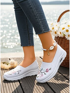 Chaussures blanches respirantes en maille pour femmes - chaussures de marche décontractées et légères pour un usage quotidien, les voyages, le jardinage et les loisirs