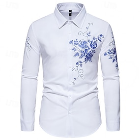 Homme Chemise boutonnée Chemises imprimées manche longue Vêtement décontracté Formel Automne Hiver Printemps été Col rabattu Imprimer Bouton bas Blanche