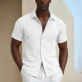 Homme Chemise Texture Chemise d'été Chemise Décontractée Chemise en velours côtelé Chemise Boutonnée Bleu Noir Blanche Rose Claire bleu marine Manche Courte Uni Revers Occasionnel Quotidien Avec