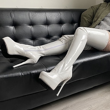 bottes à talons aiguilles blanches au-dessus du genou pour femmes – chaussures de mode sexy à talons hauts pour les soirées et les fêtes
