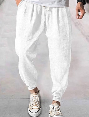 Homme Pantalons en Lin Pantalons Pantalons Amples Pantalons de Plage Cordon de serrage Avec Poches Uni Confort Respirant Longueur complète Quotidien Vacances Élégant Blanche Vert Véronèse