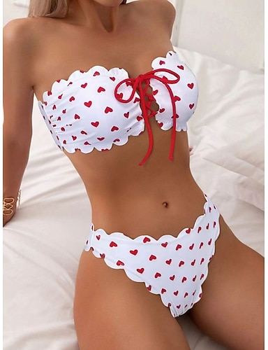 Femmes Maillots de Bain Bikini 2 pièces Coquin Maillot de bain Mince Dos nu Vacances Tenues de plage Cœur Sans bretelles Sans manches Maillots de bain