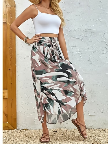 Femmes Mode Occasionnel Asymétrique Taille haute Jupes Fleuri Froncé Imprimé Haute Élasticité Quotidien Date Blanche Rose Claire Été Polyester