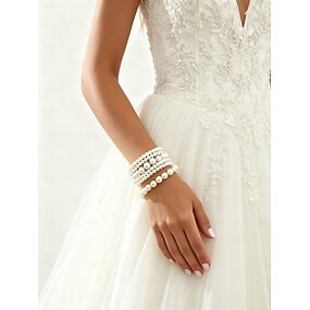 Bracelet de mariée élégant à plusieurs rangs de perles pour femme - accessoire de mariage en fausses perles pour la mariée et les demoiselles d'honneur&occasions formelles