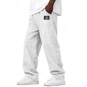 Homme Pantalons en Lin Chinos Pantalon d'été Jambe Droite Uni Confort Respirant Longueur complète Occasionnel Quotidien Extérieur Vacances Mode Noir Blanche Non Elastique