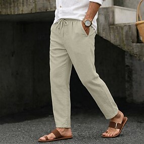 Homme Pantalons en Lin Pantalons Pantalon d'été Pantalons Amples Pantalons de Plage Cordon de serrage Taille Élastique Jambe Droite Uni Confort Respirant Longueur complète Quotidien Extérieur Fête