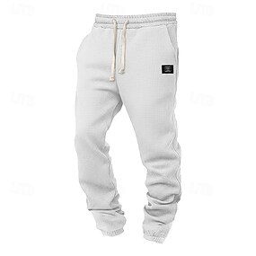 Homme Gauffré Joggings Joggeurs Pantalons Pantalon décontracté Cordon de serrage Manchette Elastique Couleur Unie Confort Longueur complète Extérieur Quotidien Vêtements de rue Vacances Mode Noir