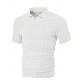 Homme Chemises Polo Gaufre Polo Occasionnel Rue Revers Manche Courte Basique Moderne Rayé Poids Léger Boutons Été Printemps Coupe régulière Blanche Bleu Roi Vert Kaki Gris Claire Chemises Polo Gaufre