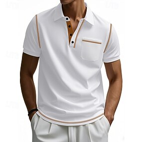 Homme Chemise de golf Polo Piqué Travail Occasionnel Revers Col Polo Côtelé Manche Courte Basique Moderne Bloc de Couleur Avec Poches Été Coupe régulière Blanche Bleu Ciel Rouge Bordeaux bleu marine