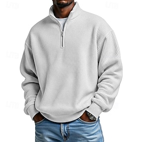 Homme Chemises Polo Gaufre Pull Sport & Loisir Tenue quotidienne Zip quart manche longue Mode Confortable Bloc de Couleur Zip Up Avec Poches Printemps & Automne Coupe régulière Bleu Noir Blanche