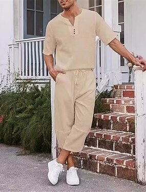 Homme Chemise 2 Pièces Ensemble chemises Chemisette Chemise d'été Ensembles assortis Plein Vacances Plein Air Noir Blanche bleu marine Kaki Manche Courte Col V Eté Vêtement Tenue