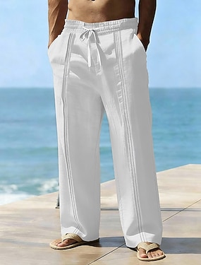 Homme Pantalons Pantalon d'été Pantalons de Plage Cordon de serrage Plis Jambe Droite Uni Confort Respirant Longueur complète Occasionnel Quotidien Fête Mode Style Classique Noir Blanche
