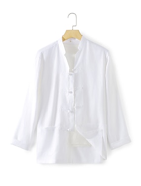 100% Lin Poche Homme Chemise Chemise Lin Noir Blanche Bleu de minuit manche longue Plein Col Mao Printemps & Automne Extérieur du quotidien Vêtement Tenue