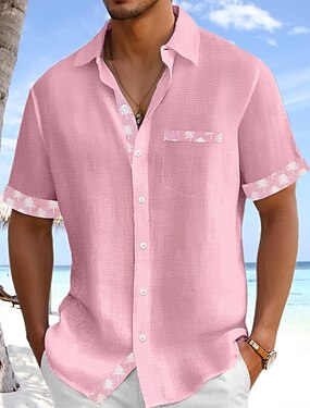 Homme Chemise Chemise de Plage Cocotier Extérieur Vacances Blanche Rose Claire Bleu Gris manche longue Col montant Printemps & Automne Vêtement Tenue Imprimé