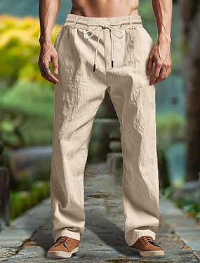 Homme Pantalons en Lin Pantalons Pantalon d'été Pantalons de Plage Cordon de serrage Taille Élastique Jambe Droite Uni Confort Respirant Longueur complète Extérieur Occasionnel Quotidien Mode Rétro