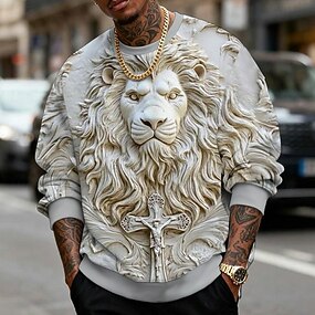 Homme Illusion d'optique Lion Impression 3D Sweatshirt Élégant Occasionnel manche longue Col ras du cou Vacances Soirée Cadeau Bleu Jaune Violet Gris Col rond 3D Toutes saisons Designer S M L XL XXL