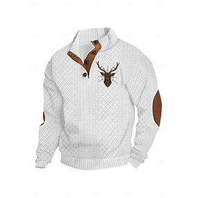 Homme Sweat-shirt Noir Blanche Vin Vert Véronèse bleu marine Col montant Renne Jacquard Patchwork Quotidien Fête Sortir Polyester Streetwear Occasionnel Automne Hiver Vêtement Tenue Pulls Capuche