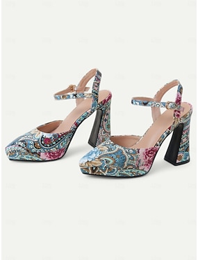 sandales à talons hauts à motifs cachemire rouges pour femmes – bout ouvert chic vintage avec talons épais – parfaites pour les fêtes et les occasions spéciales