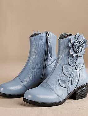 Bottines en cuir rouge pour femme avec appliqués floraux – bottines courtes vintage à talon moyen pour tenues décontractées et habillées