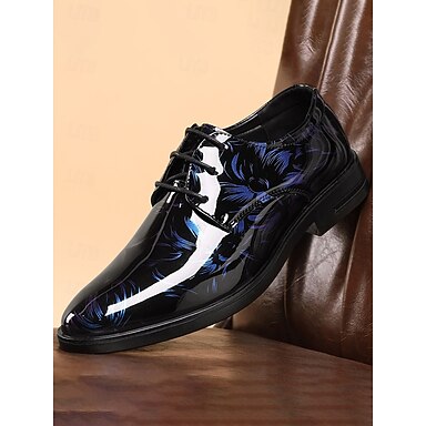 Chaussures Oxford bleues à fleurs pour homme, à lacets, élégantes et raffinées, parfaites pour les mariages, les banquets, les fêtes, les bals de fin d'année et les soirées habillées.
