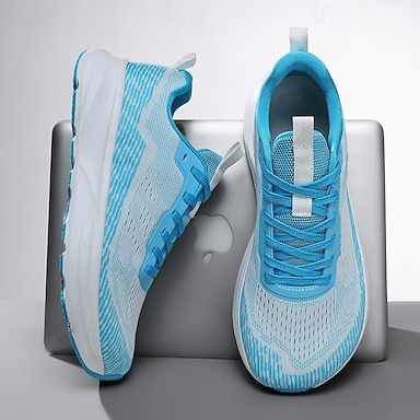 Baskets de course en maille bleue pour hommes avec tige en tricot respirant et semelle amortissante, chaussures de sport légères pour la salle de sport, l'entraînement et le quotidien