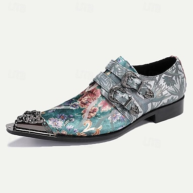 chaussures habillées à bride moine avec boucle brodée florale pour hommes avec embout en métal - cuir de vachette de première qualité, idéales pour les événements formels