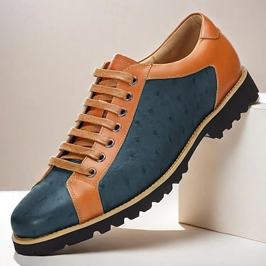 Homme Classique Occasionnel Cuir Cuir de vache pleine fleur italien Antidérapant À lacets Vin Jaune Bleu Printemps Toutes saisons