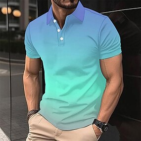 Homme Dégradé Chemises Polo Gaufre manche longue Polos Revers Occasionnel École Athleisure Tenue quotidienne Impression 3D Printemps Automne Hiver Noir bleu marine Bleu Ciel