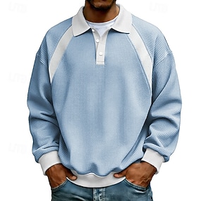 Homme Chemises Polo Gaufre Polo Occasionnel Rue Revers manche longue Basique Moderne Bloc de Couleur Patchwork Boutons Printemps Automne Coupe régulière Noir Vert Claire bleu marine Gris Bleu clair
