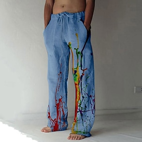 Homme Géométrique Bloc de Couleur Patchwork Pantalons Pantalon décontracté Pantalons Amples Taille Moyenne Mode Maison Extérieur Vacances Taille élastique avec cordon de serrage Pantalon en lin avec
