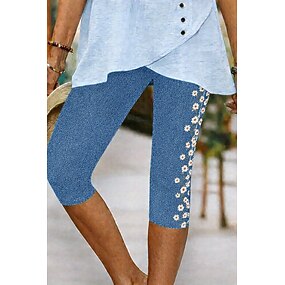 Femmes Pantalon capri Chinos Leggings Vacances ancien Streetwear Longueur mollet Taille haute Fleuri Graphique Impression Imprimé Confort Doux Confortable Élastique Quotidien Extérieur Vacances Bleu