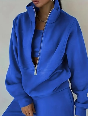 Femmes Jogging Pantalon Survêtement en polaire Haut de piste Fermeture éclair 2 pièces Couleur Unie Veste et Pantalon de Jogging Ensemble Vêtements Automne Vert forêt Bleu marine Salle de sport