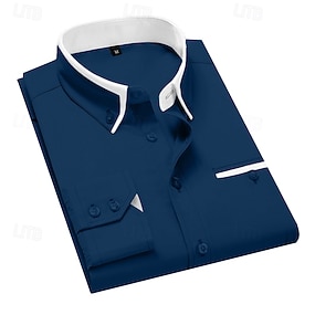 Homme Chemise Chemise à col Chemise boutonnée Courbe Mariage Soirée bleu marine Bleu Roi Bleu Violet manche longue Col Toutes les Saisons Vêtement Tenue Bouton bas
