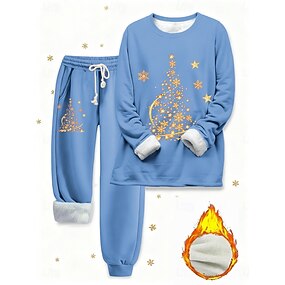 Femmes Vacances Quotidien Élégant Ensembles deux pièces Survêtement Ensembles de Pantalons manche longue Col ras du cou Noël laid Cordon de serrage Imprimé Occasionnel Quotidien Noir Rose Claire Bleu