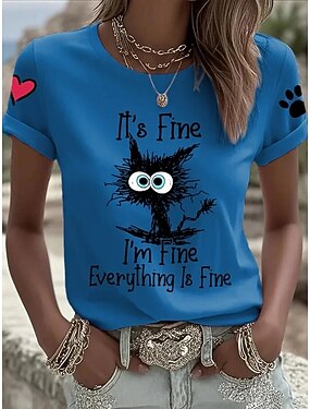 Femmes T-shirt Imprimé Graphique Chat Lettre ancien Élégant Classique Manche Courte Col ras du cou Hauts Réguliers Quotidien Week-end Bleu Violet Vert Kaki Été Printemps