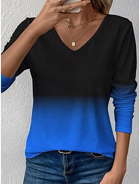 Femmes T-shirt Imprimé A Ombre Graphique ancien Élégant Classique manche longue Col en V Hauts Réguliers Quotidien Bleu Rouge Violet Orange Vert Printemps Automne Hiver