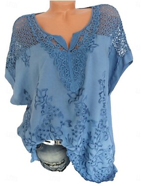 Femmes Chemisier Évider Couleur Unie ancien Élégant Occasionnel Manche Courte Col en V Hauts Réguliers Quotidien Bleu Noir Blanche Rose Claire Vert Véronèse Été Printemps