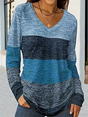 Femmes T-shirt Imprimé Fleuri Graphique Dégradé Élégant ancien Classique manche longue Col ras du cou Col en V Hauts Réguliers Quotidien Bleu Abricot Été Printemps Automne