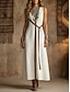 Femmes Robe maxi Faux coton lin Robe bohème Robe évasée Élégant Mode Moderne Extérieur Fête Sortir Coupe régulière Bloc de Couleur Sans manches Col mandarin Blanche Jaune Vin Bleu de minuit Ét