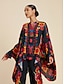 Chemisier ample à manches dolman et col ras du cou boutonné sur le devant pour femme, imprimé floral ethnique en mousseline de soie