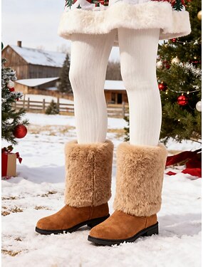 Bottes d'hiver mi-mollet en fausse fourrure bordeaux pour femmes – bottes de neige chaudes style Père Noël pour Noël, tenues de vacances et vêtements d'extérieur