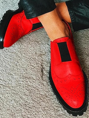 Chaussures slip-on en faux cuir brogue rouges pour hommes - Design vintage avec soufflets élastiques et semelle robuste pour les occasions formelles et décontractées