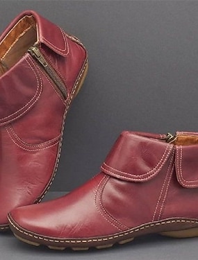 Bottines en similicuir bordeaux pour femme avec fermeture éclair latérale, bottines plates décontractées et confortables pour la marche et le quotidien