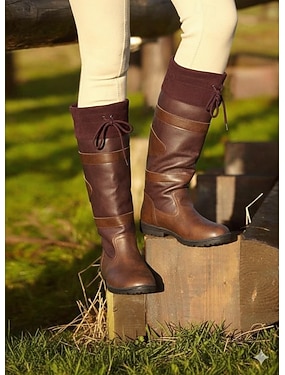 bottes d'équitation en similicuir marron pour femmes avec cordon de serrage réglable - bottes d'équitation d'extérieur hautes pour l'hiver et les vêtements décontractés